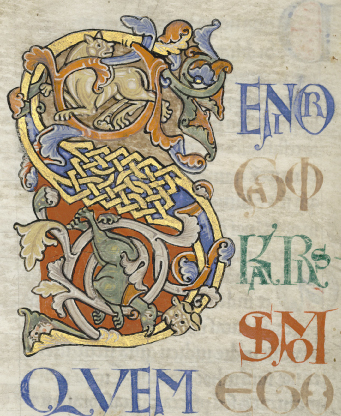 Aujourd’hui conservée aux médiathèques d’Orléans, ce manuscrit du XIIe siècle est décoré de nombreux lions stylisés.
